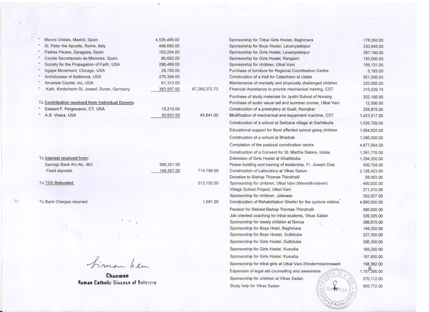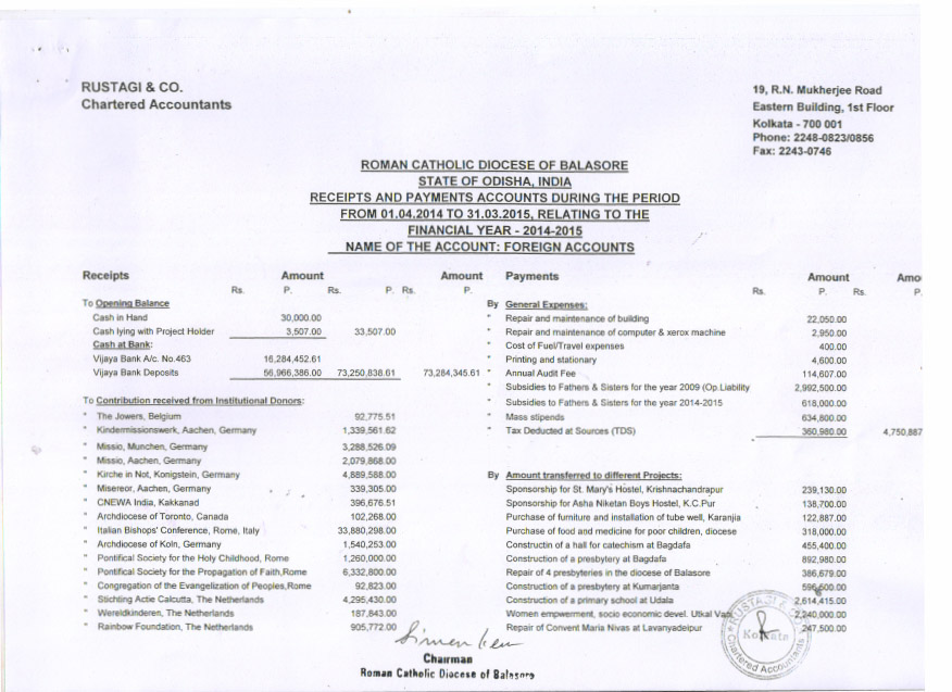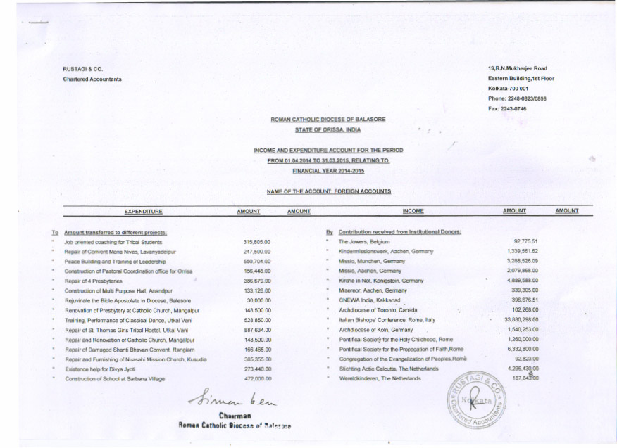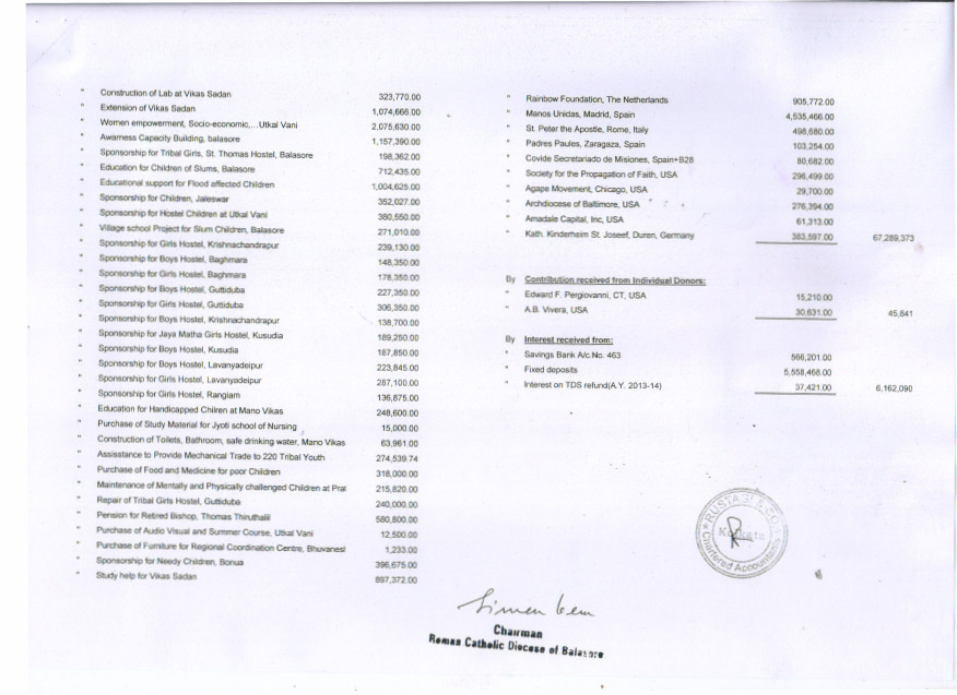 Quarterly Receipts of Foreign Contribution for the period from October to December 2015 |